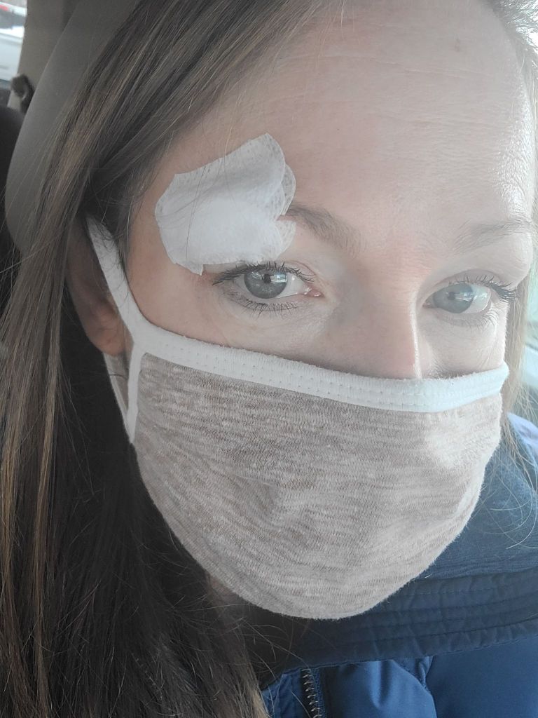 I’ve had a dry patch under my right eyebrow for a while which prompted my dermatologist to skillfully slice it off. In doing so, she found a trifle of cancer. So yesterday I had more slicing and cauterizing done, followed by suturing and bandaging. Fortunately the lovely nurse who was assisting the procedure covered me with a warm blanket which made the entire experience…pleasant. And ultimately, I will take three hours of peace and quiet any way I can get it. Even if it involves inhaling the scent of my own burning flesh.